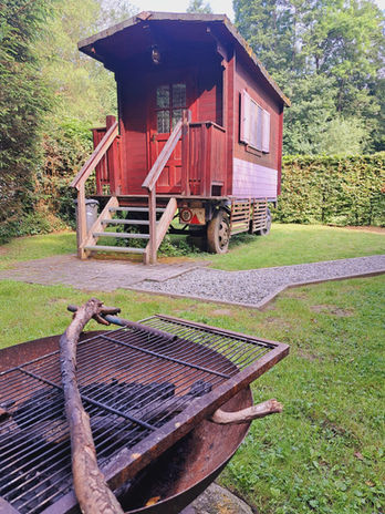 La roulotte Esméralda ne dispose pas de cuisine mais bien d'un frigo et d'un micro-ondes.